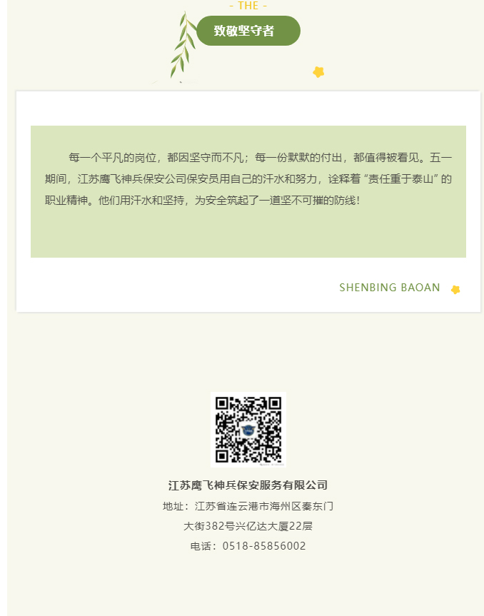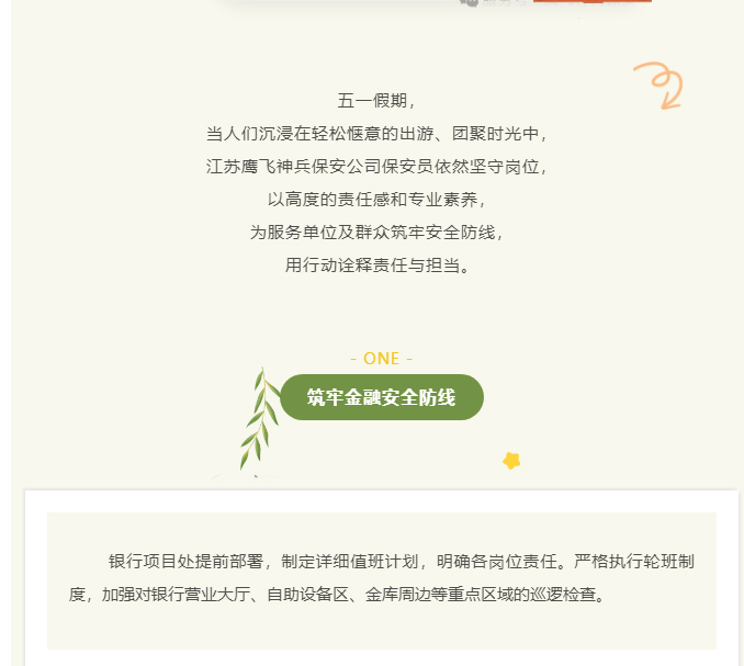 五一坚守,守护平安|鹰飞神兵保安公司为客户筑牢节日安全防线