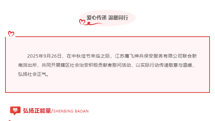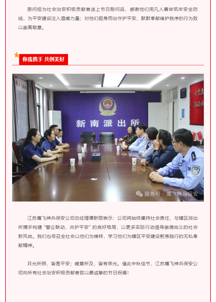 中秋添暖意 警企送关怀|江苏鹰飞神兵保安公司联合新南派出所中秋慰问