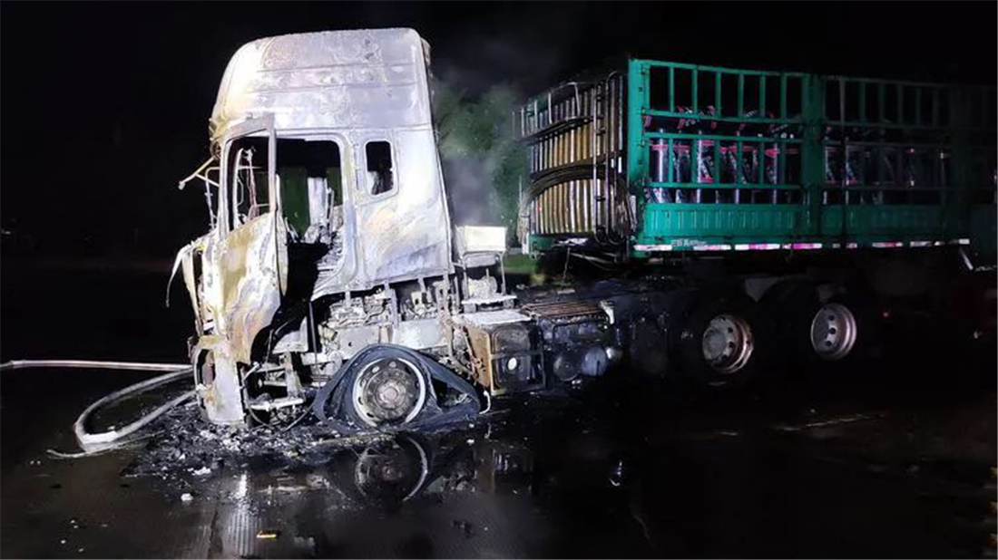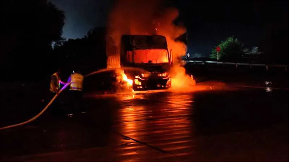 2020年8月1日晚8点10分左右,一辆牌照为冀JX8773的河北半挂货车在灌云服务区西区停车位处车头突然起火自燃,起火时驾乘人员不在现场。鹰飞当班保安发现火情后,及时向服务区负责人及物业经理上报,并拨打了119火警电话,及时疏散车辆及周边人员。